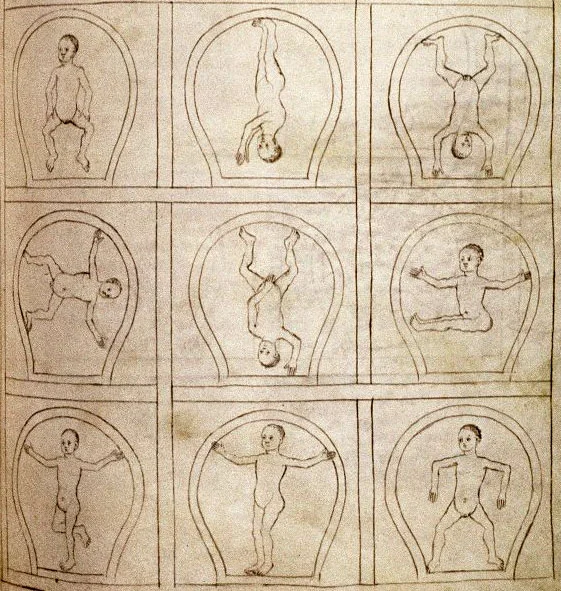 14th century diagrams of embryos in various positions.